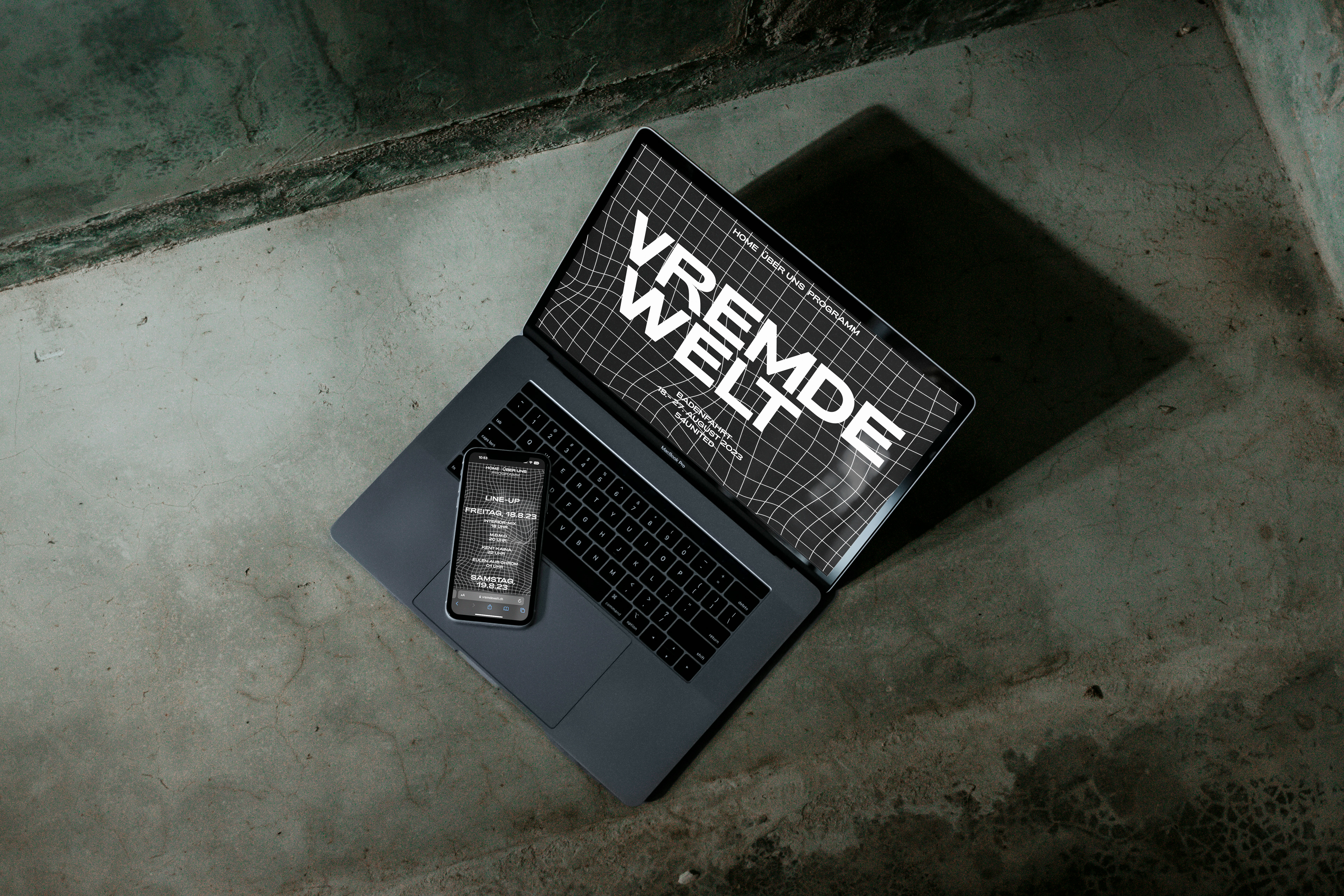 Mit «Vremde Welt» wurden an der Badenfahrt 2023 die Türen zur Techno- und Elektro-Musik geöffnet. In dieser ehrenamtlichen Zusammenarbeit entstand ein Erscheinungsbild, das Bezug zur pulsierenden Musik und zur Unterwasserwelt nahm. Täglich überraschten die Verantwortlichen von «Vremde Welt» mit einem neuen Tagesmotto, wie beispielsweise der Rainbow Fish-Nacht. Für den Aufbau von «Vremde Welt» musste weder Neues hergestellt noch Altes weggeworfen werden, was zu einer einfachen Planung führte. Dadurch entstand ein abstraktes schwarz-weisses Erscheinungsbild, das durch die Schriftart «Adieu» von GoodTypeFoundry verfeinert wurde.